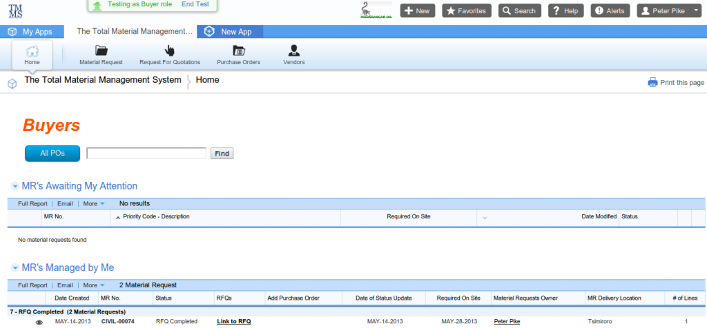 After the application has loaded which should only take a few seconds , depending on your internet speed you arrive at the dashboard allocated to your role. as below: